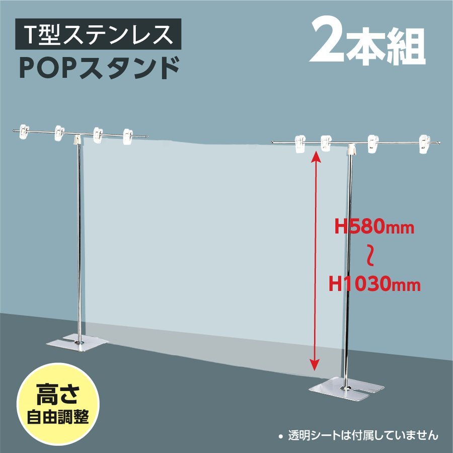 [送料無料]ステンレス製 伸縮式 フロアースタンド 【2本組】W410 × H580〜1030mm | T字 T型スタンド ポスタースタンド (ビニールシートは別売) fst-t550