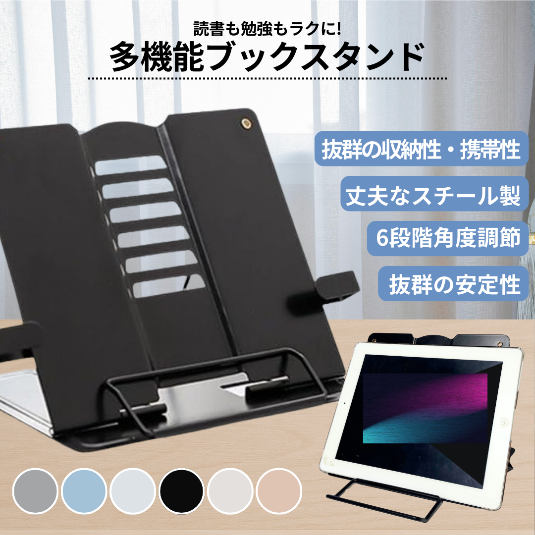 ブックスタンド 本立て 書見台 読書台 角度調整 タブレットスタンド iPad Kindle 料理本 勉強 受験 在宅 リモート 書斎 デスク 楽譜スタンド