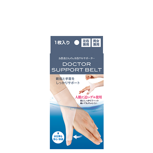 特殊ゲル素材で安心・快適。肌色タイプで目立ちにくい。水仕事、お風呂OK、動いても密着、ズレにくい。手首に添ったフォルム、内側のボーン、薄さ約2mm 整形外科医との共同開発 具志堅先生 左右兼用、男女兼用