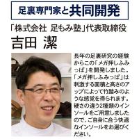 長年の足裏研究の経験からこの「メガ押しふみっぱ」を開発しました。「メガ押しふみっぱ」は刺激する面積と高さのアップによって竹踏みのような感覚を得られます。硬さの違う2種類のインソールをご用意しました。ご自身に合う快適なインソールをお選びください。