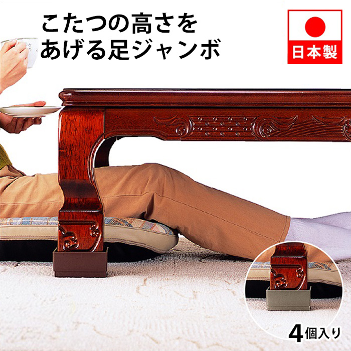 こたつの高さをあげる足 ジャンボ 4個入り ベージュ ブラウン テーブル 脚 高さ調節 コタツ 高さ調整 継ぎ足 底上げ 高くする 高さ 上げる 日本製 あすつく