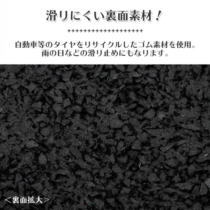 裏面は廃タイヤをリサイクルしたゴム素材なので雨の日の滑り止めにもなります。