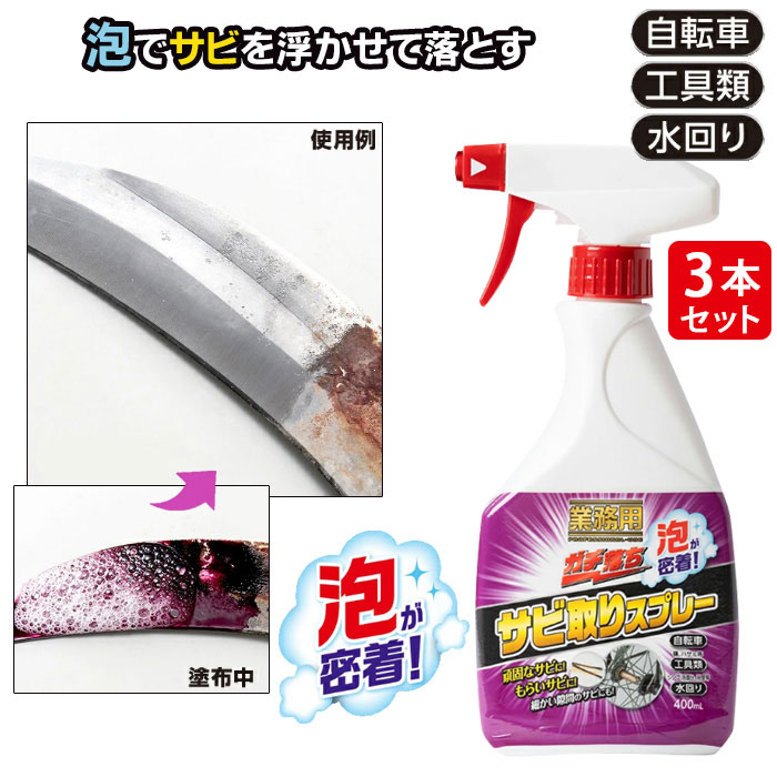 業務用 ガチ落ち サビ取りスプレー 3本セット 錆 さび 自転車 除去 浴室 洗面台 トイレ バイク 工具 ホイール 錆取り もらいサビ 泡スプレー サビ落とし
