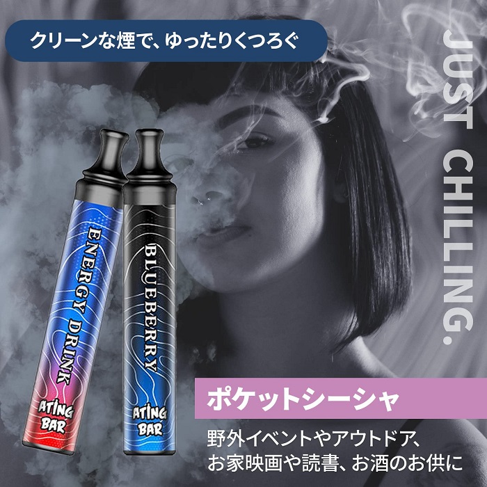 ポケットシーシャ 持ち運び シーシャ 本体 ATING BAR エイティングバー フレーバー 1800回使用可能 ニコチンフリー ポータブル 携帯 持ち歩き 使い捨て