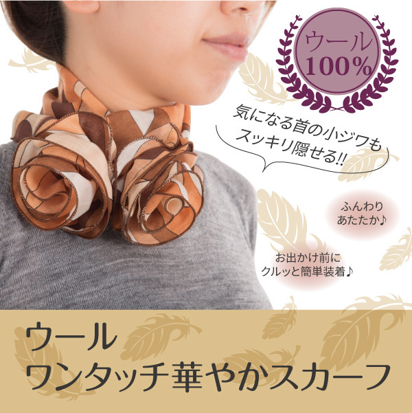 | 商品説明 | ウール素材の巻くだけ簡単あったかスカ−フ! 気になる首の小ジワもスッキリ隠せて首もとあったか&おしゃれ! ワンタッチで巻けてズレにくい! |