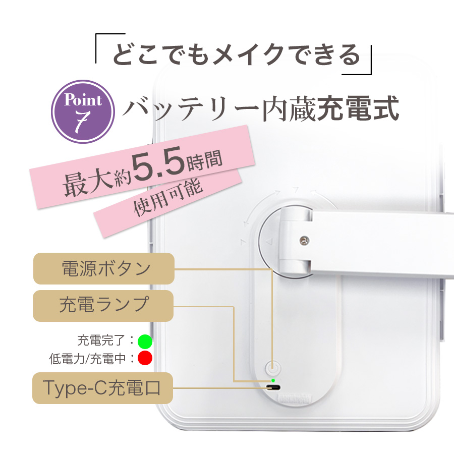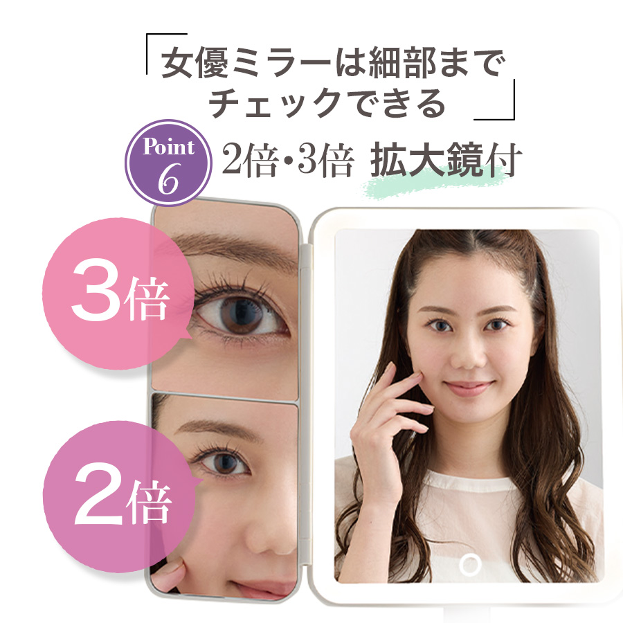 ★そこで、今年の最新モデルとして進化した「美ルル スタイリングスタンド LEDメイクアップミラー」が登場!★●3色ライト/明るさ無段階調節可能●70個のLED電球が搭載されて、軽いタッチですぐ点灯します。