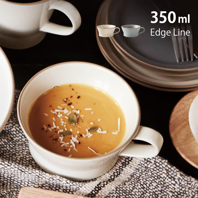 エッジライン スープカップ 350ml(お皿 カップ 持ち手付き 大きめ シンプル モダン 大人 おしゃれ かわいい 北欧風) 即納