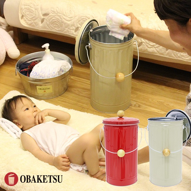 OBAKETSU オバケツ おむつ消臭ペール(おむつペール おむつ処理ポット おむつ 生ごみ 臭い 漏れない ニオイ対策 ゴミ箱 レトロ バケツ型 おしゃれ) 即納