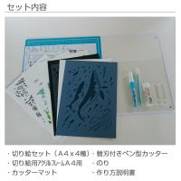【セット】切り絵セット(A4x4種)、切り絵用アクリルフレームA4用、カッターマット、替刃付きペン型カッター、のり、作り方説明書