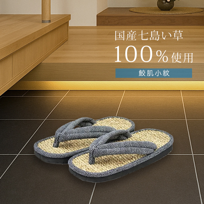 国産い草草履 鮫肌小紋 B-00133(草履 メンズ いぐさ い草 スリッパ おしゃれ 男 畳 父の日 夏用 夏物 和風 和装 七島)