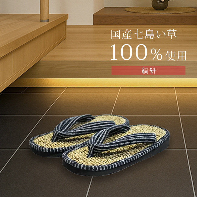 国産い草草履 縞絣 B-00134(草履 メンズ いぐさ い草 スリッパ おしゃれ 男 畳 父の日 夏用 夏物 和風 和装 七島 浴衣)