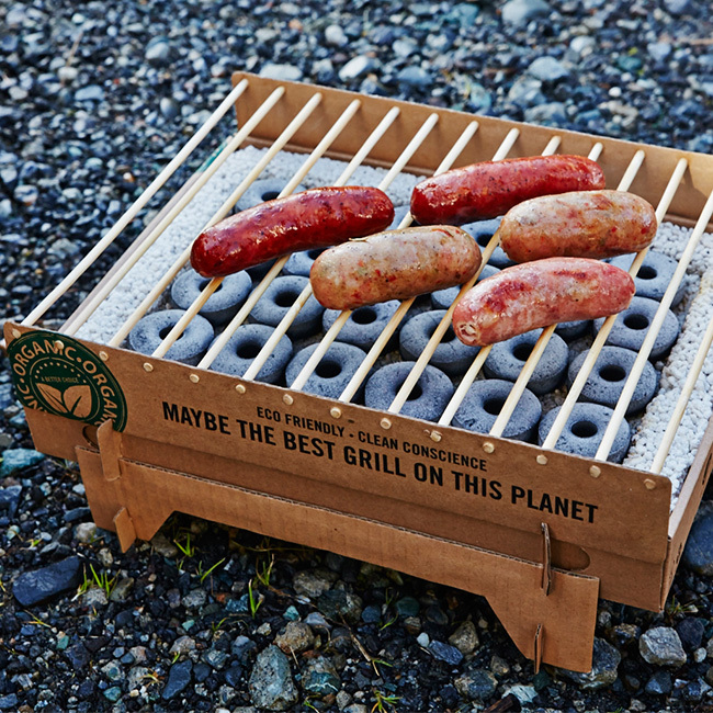 竹炭、火山石、竹、FSC認定段ボールの全て天然素材でできたインスタントグリル。軽くてコンパクト。簡単セットアップ。