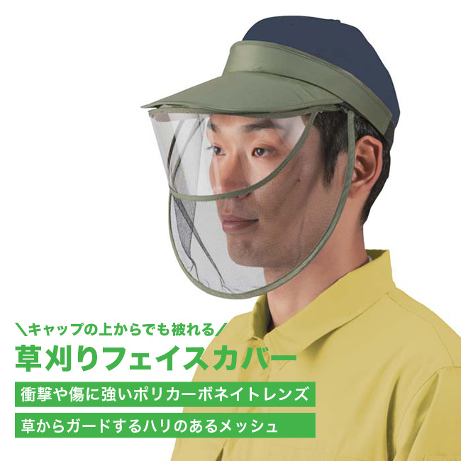 草刈りフェイスカバー(草刈り 道具 フェイスガード アイテム 便利グッズ 作業着 草刈 草 雑草 小石 枝 飛散 対策 ネット) 即納