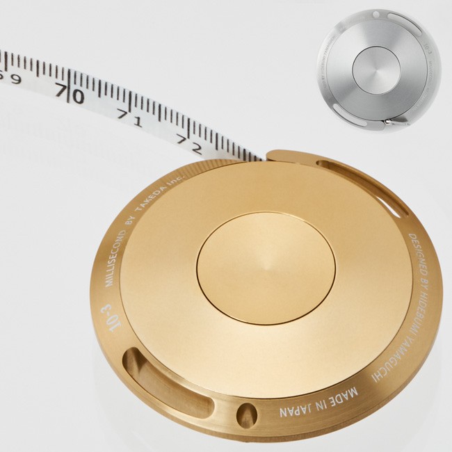 アクセサリーを身に付けているようなスタイリッシュで美しいメジャー。アルミの塊を削り出して制作。指先に心地よい、わずかな凹み。指にフィットします。テープはJIS1級の1.5m抗菌タイプ、グラスファイバー素材。柔らかい素材でありながら非常に丈夫なのが特徴。裏と表では、縦書きと、横書きで分かれていてシーンによって使い分けができるので、とても便利です。引き出したテープは、手を放しても、ストッパーによって固定され本体に戻らない構造。