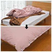 敷きパッドと掛布団をクリップで挟むことで、まるで寝袋のような使い方が可能。キャンプや旅行にも便利です。