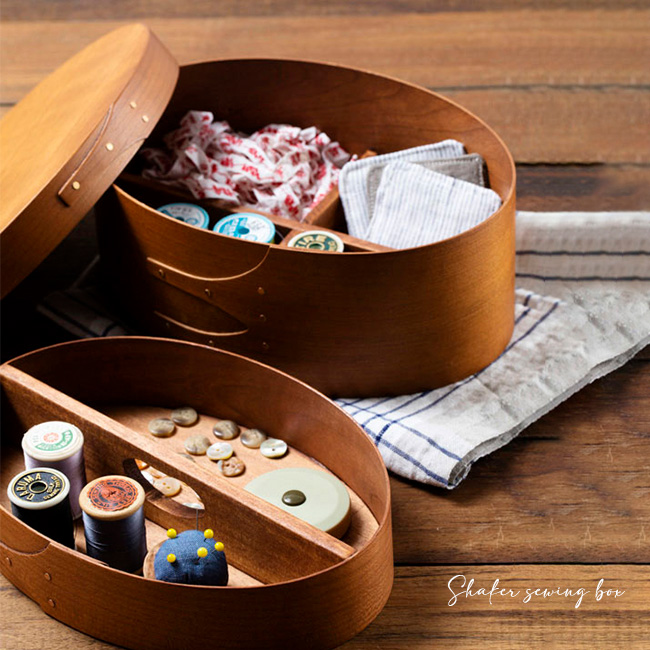 シェーカーボックスにヒントを得て作った、オーバル型のソーイングボックスです。