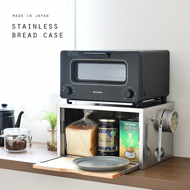 ステンレス ブレッドケース 2484(足立製作所 日本製 パンケース ステンレス 木製 お盆 トレー 付き キッチン収納) メーカー直送