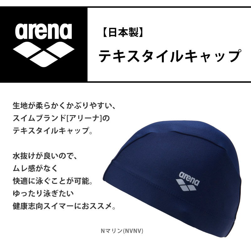 アリーナ arena テキスタイルキャップ ロゴプリント スイムキャップ 水泳 ユニセックス 競泳 練習用 日本製 AS5SSC70U F フリーサイズ メール便発送