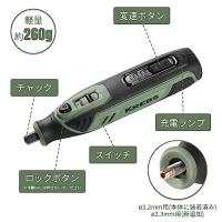 KREBS(クレブス) 充電ミニルーター(リューター)3.6V 2000mAh コードレス 軽量 5段変速 最高25000rpm ビット41点セ