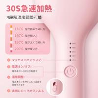 ・一千万級マイナスイン放出&やけど防止 千万級マイナスインがヘアアイロンから放出し、静電気付き髪の毛を中和したり、髪の毛の水分を保ったり、エレガントで滑らかな髪を実現できます。PTC加熱技術を採用しプレートを急速加熱できます。やけど防止ためヘアアイロンの先端にやけど防止トップを設計しました。