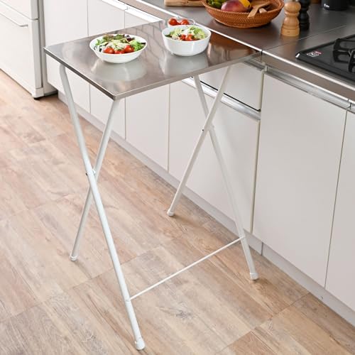 山善(YAMAZEN) テーブル 折りたたみテーブル ハイタイプ ステンレス天板 キッチンカウンター 作業台 幅50×奥行48×高さ85cm キ
