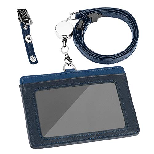 Maiwey IDカードホルダー 横型 IDカードケース ネームホルダー 伸縮リール式 クリップストラップ付き 両面用 本革 包装 (ダークブル