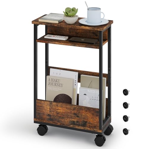 サイドテーブル スリム キャスター付き 幅40×奥行き18×高さ59.5cm サイドテーブル 収納 スリム ナイトテーブル ベッド横 おしゃれ