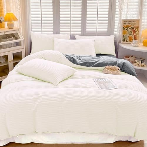 ・シンプルなデザインシアサッカー生地&クシュクシュ加工が可愛い!表面の凹凸によって、生地が肌に触れる面積が少なくて、肌と生地の間に空間ができるため通気性がよく快適に過ごせます。しわになりにくく、色落ちしにくく、毛玉ができにくく、快適な睡眠を誘います。どんな季節でも気軽に洗えるから、清潔にお使い頂けます。お部屋の雰囲気がぴったり合わせます。布団カバーの側面の全開ファスナーのデザイン、使い勝手が良いです。装着