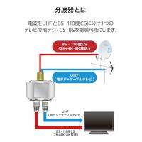 ・出力側ケーブル付分波器。テレビの電波を地デジ(UHF)とCS・BSに分けます