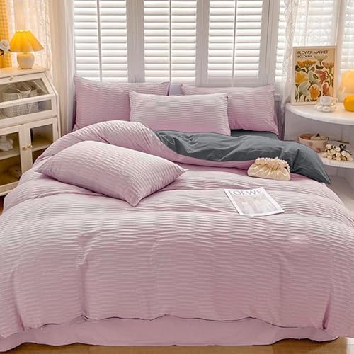 ・シンプルなデザインシアサッカー生地&クシュクシュ加工が可愛い!表面の凹凸によって、生地が肌に触れる面積が少なくて、肌と生地の間に空間ができるため通気性がよく快適に過ごせます。しわになりにくく、色落ちしにくく、毛玉ができにくく、快適な睡眠を誘います。どんな季節でも気軽に洗えるから、清潔にお使い頂けます。お部屋の雰囲気がぴったり合わせます。布団カバーの側面の全開ファスナーのデザイン、使い勝手が良いです。装着やすい、