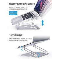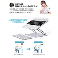 ・●角度・高さを自由に調節出来る:ノートPCスタンドの角度は無段階に調整でき、高さは約35mm〜280mmの範囲で調節です。画面を目線の高さに合わせることで、自然と姿勢がましになり、肩こりや猫背、腰痛の解消にも効果的。動画視聴など、観る系の作業と相性も抜群です。人間工学設計に基づき快適な作業環境を作り上げるノートPCスタンドです。 ●持ち運び