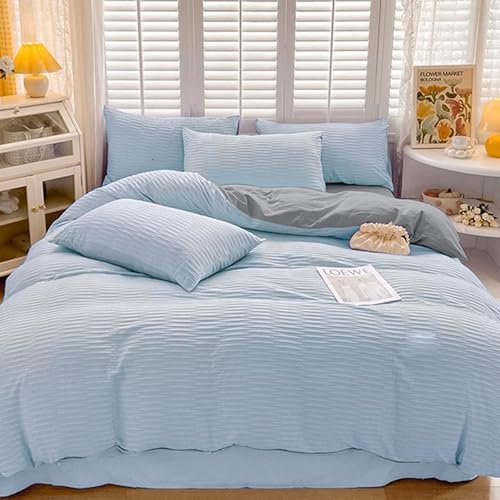 ・シンプルなデザインシアサッカー生地&クシュクシュ加工が可愛い!表面の凹凸によって、生地が肌に触れる面積が少なくて、肌と生地の間に空間ができるため通気性がよく快適に過ごせます。しわになりにくく、色落ちしにくく、毛玉ができにくく、快適な睡眠を誘います。どんな季節でも気軽に洗えるから、清潔にお使い頂けます。お部屋の雰囲気がぴったり合わせます。布団カバーの側面の全開ファスナーのデザイン、使い勝手が良いです。装着やすい、