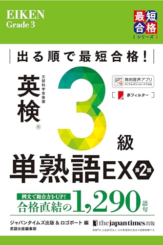 大人気シリーズとなった英検単語帳EX! 3級が8年ぶりの大改訂。 最新の出題傾向に沿った合格に直結する1290語句で、あなたを合格へ導きます! 即戦力が違う ■2024年~の新形式試験にも安心! ■カギとなる「筆記大問1」出題頻度順に掲載! ■コロケーションを押さえた例文付き! ■文法力や基礎力が上がるミニコラムが新設! ■章末Tipsでは、ライティングで使える4パターンを解説 ■見出し語、訳語、例文の音声付き! ■カギとなる「筆記大問1」出題頻度順に掲載、だから効率的! ・15年分の過去問題(約15万語)を徹底分析し、3級突破に必要・十分な1290語句を収録しました。配点が高い「筆記大問1」の登場頻度順に掲載し、訳語も頻度に基づいて表記。 ■コロケーションを押さえた例文付き! 発信力も求められる英語検定合格に導くため、そのまま覚えられるシンプルな例文をすべての単熟語に着けています。 ■文法力や基礎力が上がるミニコラムが新設! 見出し語に登場しなかったさまざまな分野の用語、筆記大問1で問われる文法事項もわかりやすく解説。
