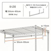 ドウシシャ ルミナスラック 伸縮式ハンガーポール 幅50~65cm棚専用 19HP-50S 耐荷重20kg ポール径19mm スチールラックパー