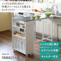 山善(YAMAZEN) ワゴン キッチンワゴン キャスター付き 4段 (ステンレス天板耐熱温度 : 200度) 幅24×奥行50(取っ手含む奥行