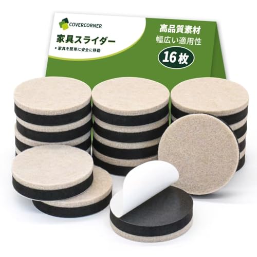 COVERCORNER 家具スライダー 16枚セット直径45mm/耐荷重粘着フェルトパッド 重い家具も楽々移動 キズ防止・防音対策 床保護 コー