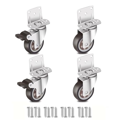 Zalslei L型 キャスター 車輪 ブレーキ付き 1.25インチ 360度回転 静音 TPEゴム輪 自在キャスター ネジ付き ストッパー付き