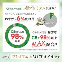 ・?原料:希少なココナッツ由来100%。さらにその中から希少な「C8(カプリル酸)」のみを抽出 ?C8は、中鎖脂肪酸の中でも最も消化吸収が早くすぐエネルギーになります。