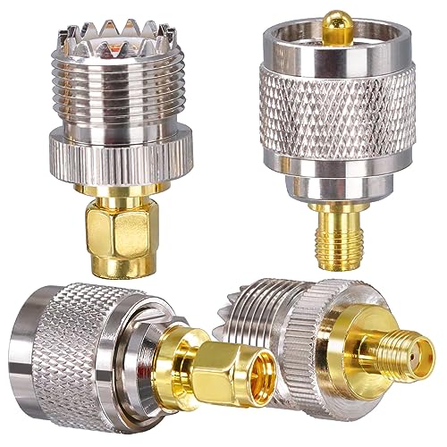 ・パッケージ内容: SMA から UHF へのコネクタ 4 個 (SMA オスから UHF オスへのコネクタ 1 個、SMA オスから UHF メスへのコネクタ 1 個、SMA メスから UHF オスへのコネクタ 1 個、SMA メスから UHF メスへのコネクタ 1 個)