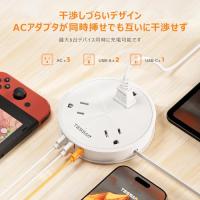 延長コード 短い 薄型プラグ TESSAN 電源タップ usb付き タイプc プラグ コンセント タップ 丸型 巻き取り式 電源タップ 3個AC