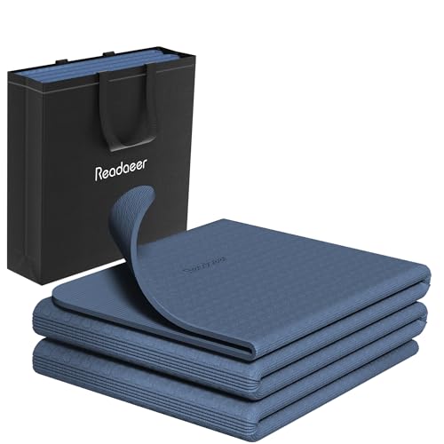 Readaeer ヨガマット トレーニングマット 折り畳み式 183cm×61cm 厚め 6mm TPE素材 無臭 防音 収納バッグ付き 軽量