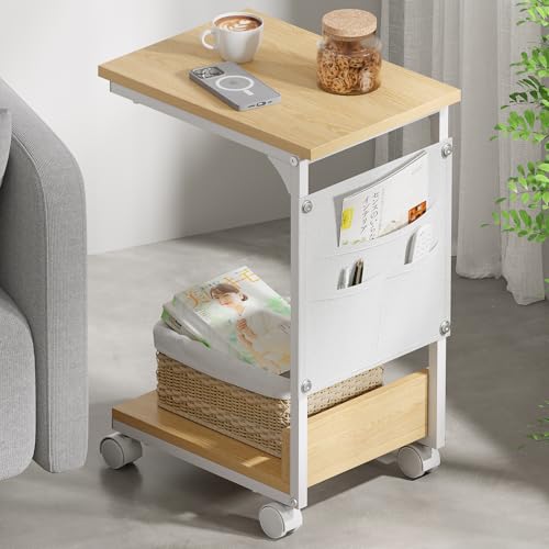 Holdm サイドテーブル キャスター付き ナイトテーブル サイドテーブル ベッド横 おしゃれ 幅37×奥行26×高さ54cm アジャスター付き