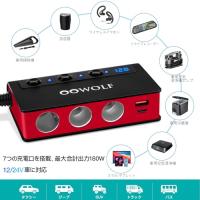 OOWOLF シガーソケット 3連 180W USB×4ポート Quick Charge3.0 +PD 18W搭載 12-24V車対応 急速充電