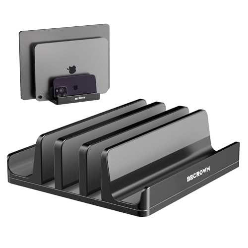 BECROWM ノートパソコンスタンド 縦置きpcスタンド 縦置き 5台収納 ホルダー 幅調整 タブレット/パソコン縦置きスタンド アルミ合金