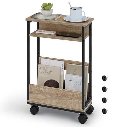 WOWQ サイドテーブル スリム キャスター付き 幅40×奥行き18×高さ59.5cm ナイトテーブル スリム ベッドサイドテーブル ベッド横
