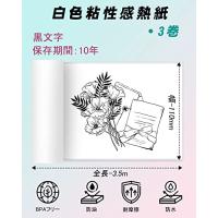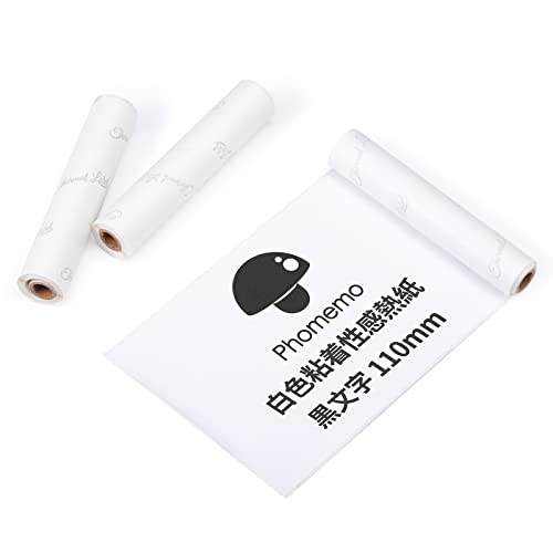 ・Phomemo 粘着剤 110mm幅 白色感熱紙 プリンター用紙、 Phomemo M04AS Bluetoothサーマルプリンタ対応、黒文字、3ロール、メモ、リスト、写真に適しています。
