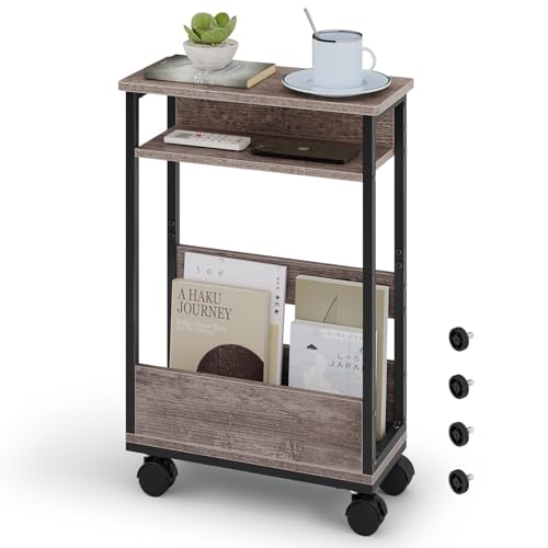 WOWQ サイドテーブル スリム キャスター付き 幅40×奥行き18×高さ59.5cm サイドテーブル 収納 スリム ナイトテーブル ベッド横