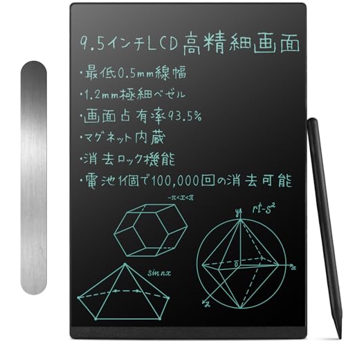 Elegirme 電子メモパッド デジタルノート 9.5インチ 超薄型 背面マグネット付き 0.5mm極細線幅 ロック機能付き ワンタッチ消去
