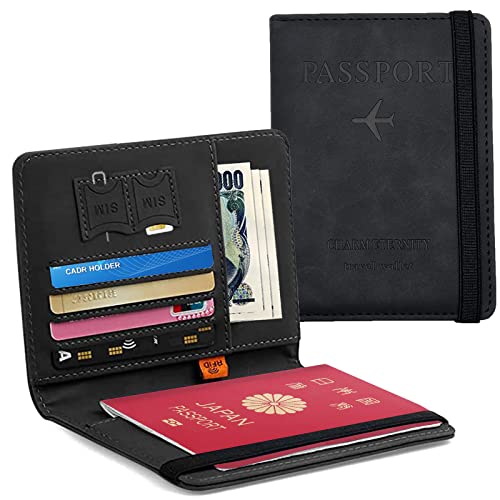 [Hueapion] パスポートケース スキミング防止 パスポートカバー 多機能収納ポケット パスポート カードケース ラベルウォレット 高級P