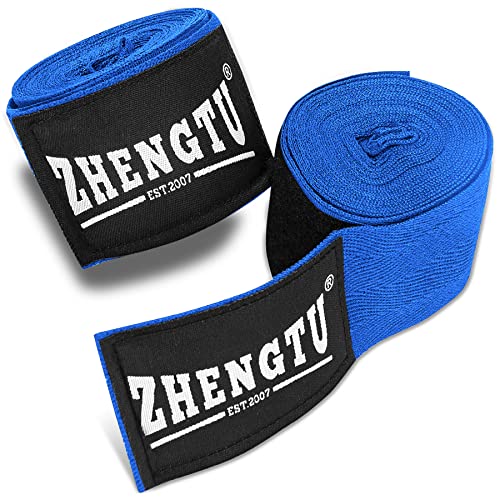 ZTTYボクシング バンテージ コットン 伸縮性 マジックテープ式 総合格闘技 キックボクシング 赤・黒・ブルー 3m・5m (ブルー 3m)